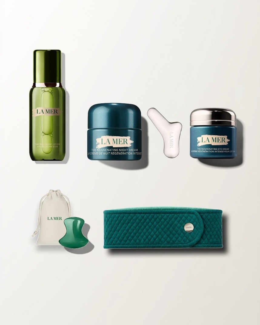 Begin your ritual with The Treatment Lotion, infusing skin with hydration as it softens and prepares. Follow with the New Rejuvenating Eye Cream, gently smoothing along the eye contour to address visible signs of aging. Finish with The Rejuvenating Night Cream, pressing into face and neck as the final step of overnight renewal.